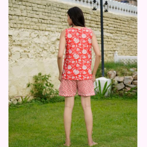 Cotton Floral Print Sleeveless Top Short Set