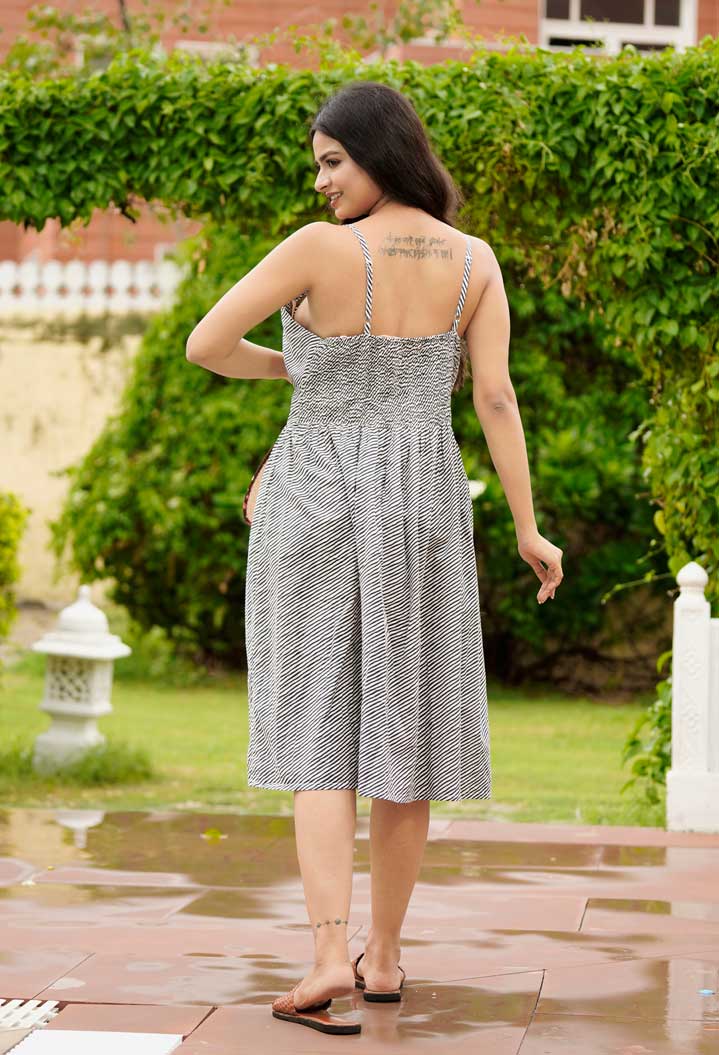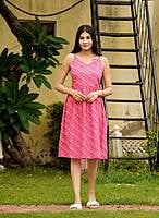 Cotton Leheriya Print Sleeveless Short Nighty