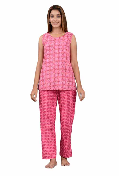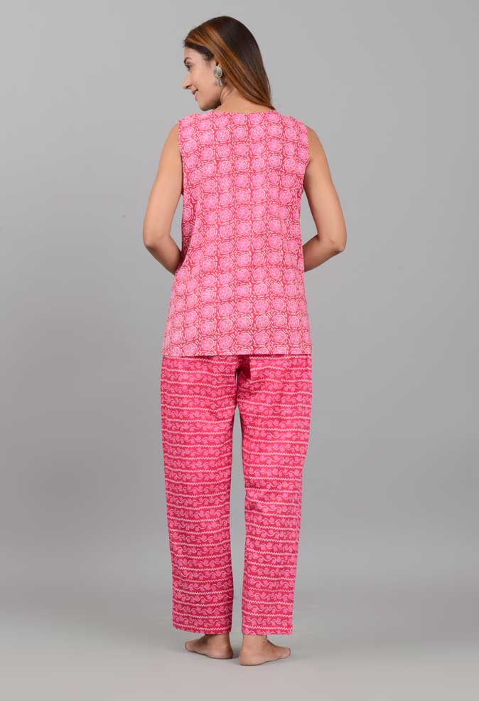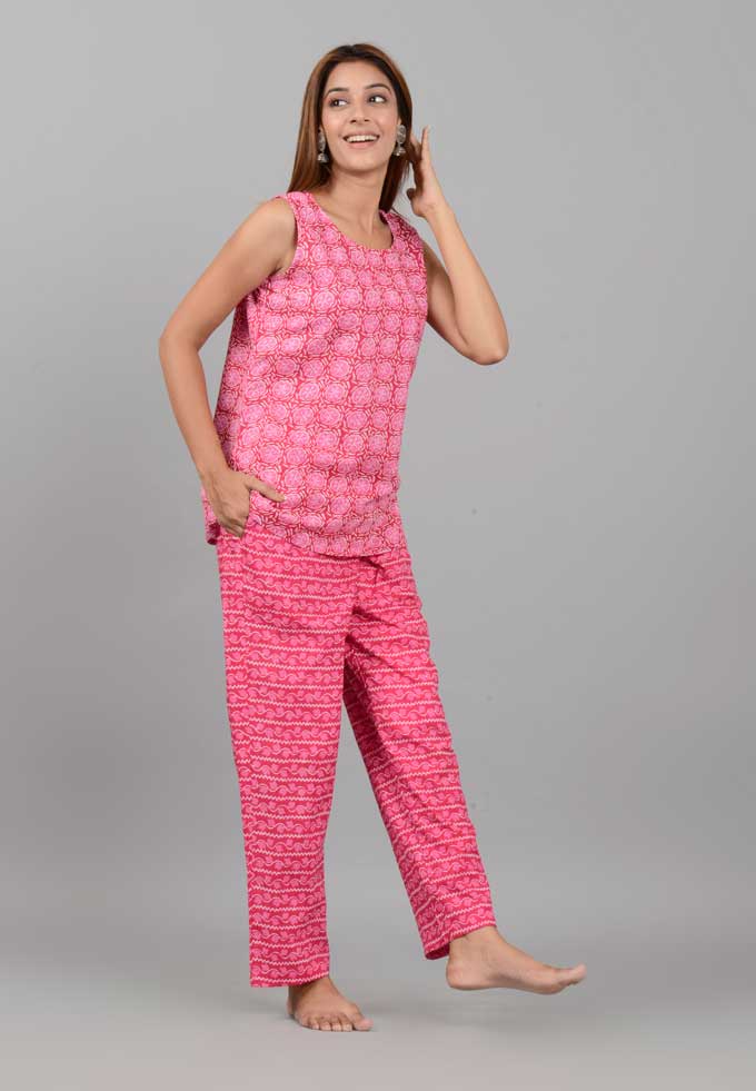 Cotton Kashish Print Sleeveless Top Pajama Set