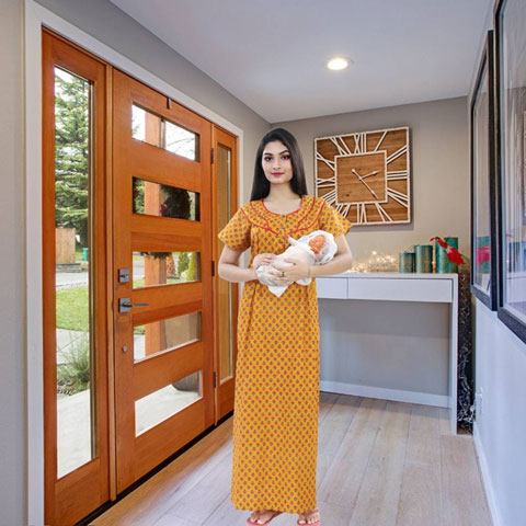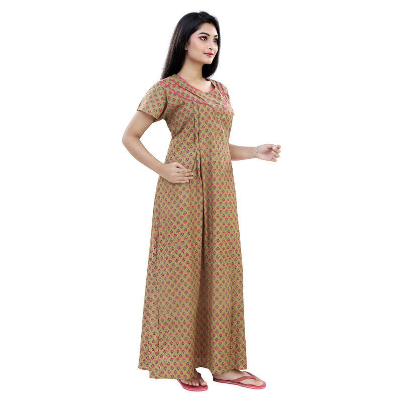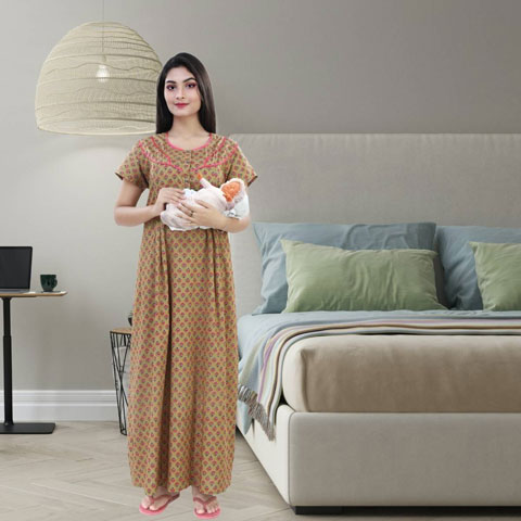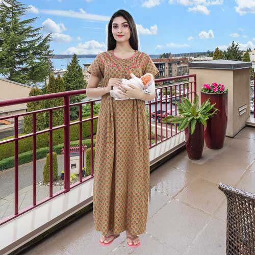 - MULTIPURPOSE USE Try our maternity feeding nighty gown maxi made for modern Indian woman. Exquisite trendy cotton designs that can be used as regular nighty also.