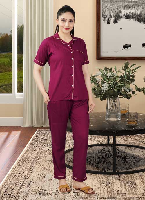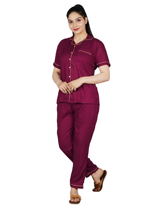 - COMFORTABLE FOR ALL AGES Designed for comfort of all ages. Extremely comfortable, elegantly designed good quality stitched Rayon shirt and pyjama set for women.